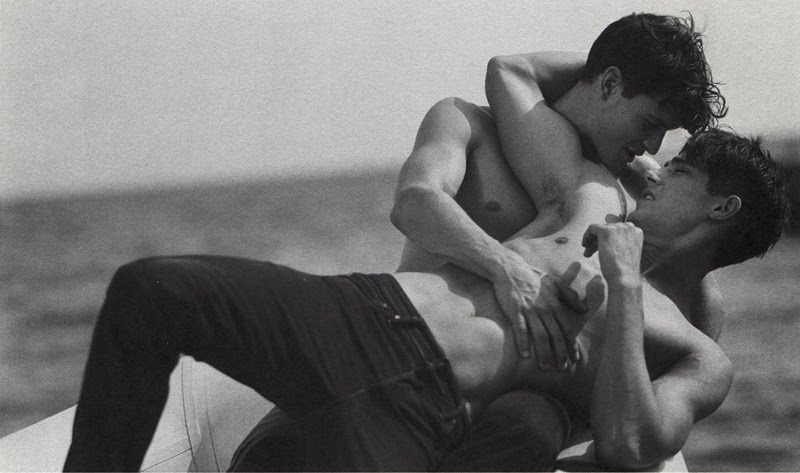 Dit is mijn vijfde blogbericht in de reeks over intimiteit tussen mannen. Het eerste ging over afbeeldingen van op elkaar verliefde mannen, het tweede over vriendenparen, het derde over mannenparen en het vierde over zoenende voetballers. Ik ben van plan om nog berichten te schrijven over homotweelingen, over homo-erotiek in mannengroepen, over olieworstelen, over andere mannensporten en over mannennaakt dat geen porno is.